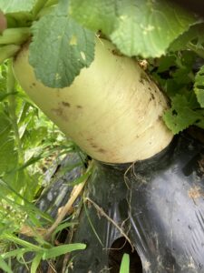 来週の火曜日には大根、ジャガイモを収穫をします。大根の方も少しばかり・・・動物に荒らされたみたいです。動物も生きるためには食べ物が必要なんですね。