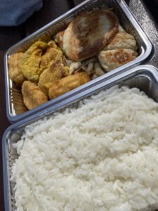 前日の夕方の当日の弁当の準備をして、レトルト食品を料理。