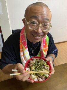 たいていハウスで作ったおかずを丼に乗せたお弁当です。
